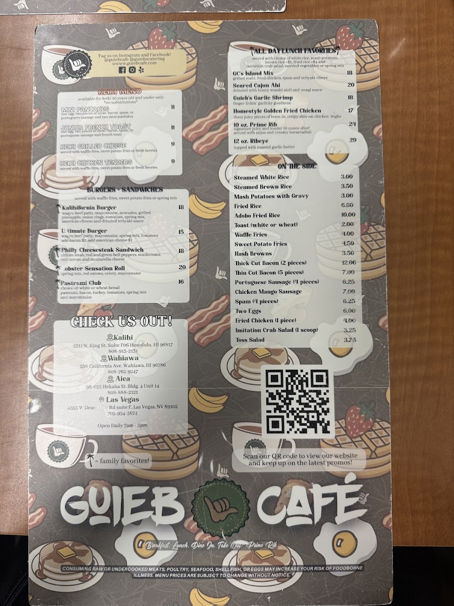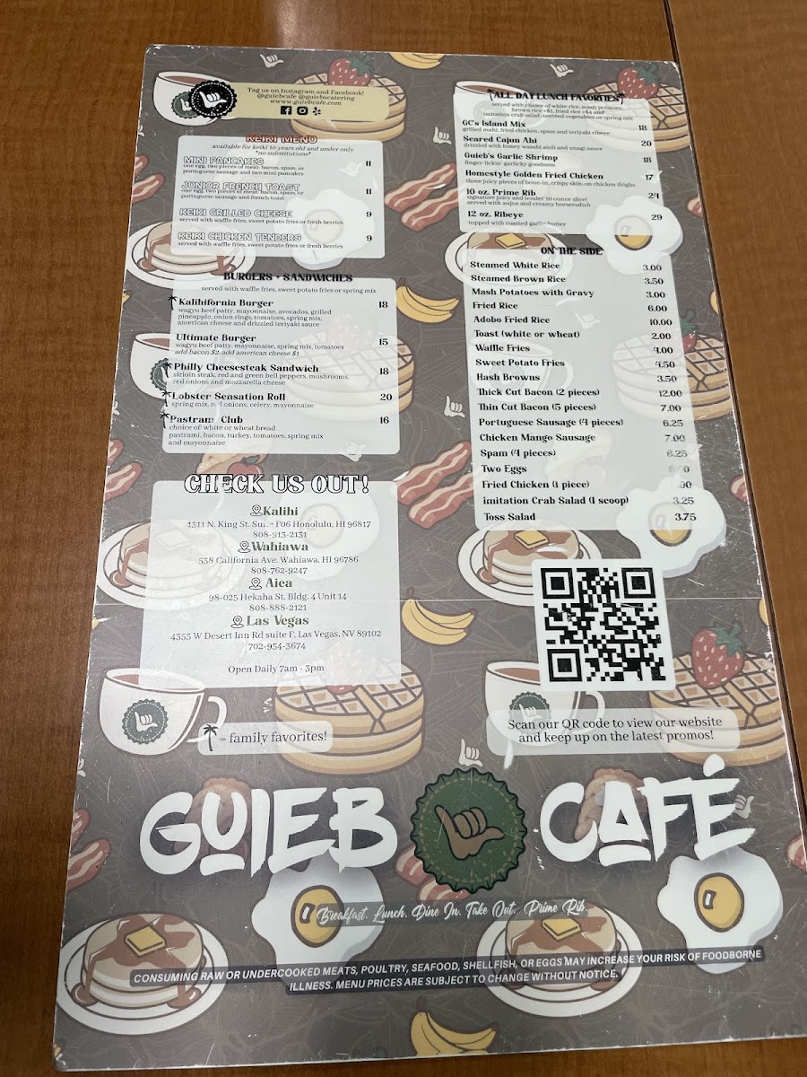 Welcome to Guieb Cafe, a culinary gem nestled in the heart of Honolulu, HI. This vibrant cafe specializes in a delightful mix of local Hawaiian flavors and beloved comfort food staples, creating a unique dining experience that resonates warmly with both locals and visitors alike. From the moment you step inside, you’re enveloped in a laid-back, inviting atmosphere that strikes the perfect balance between modern chic and cozy mom-and-pop charm.